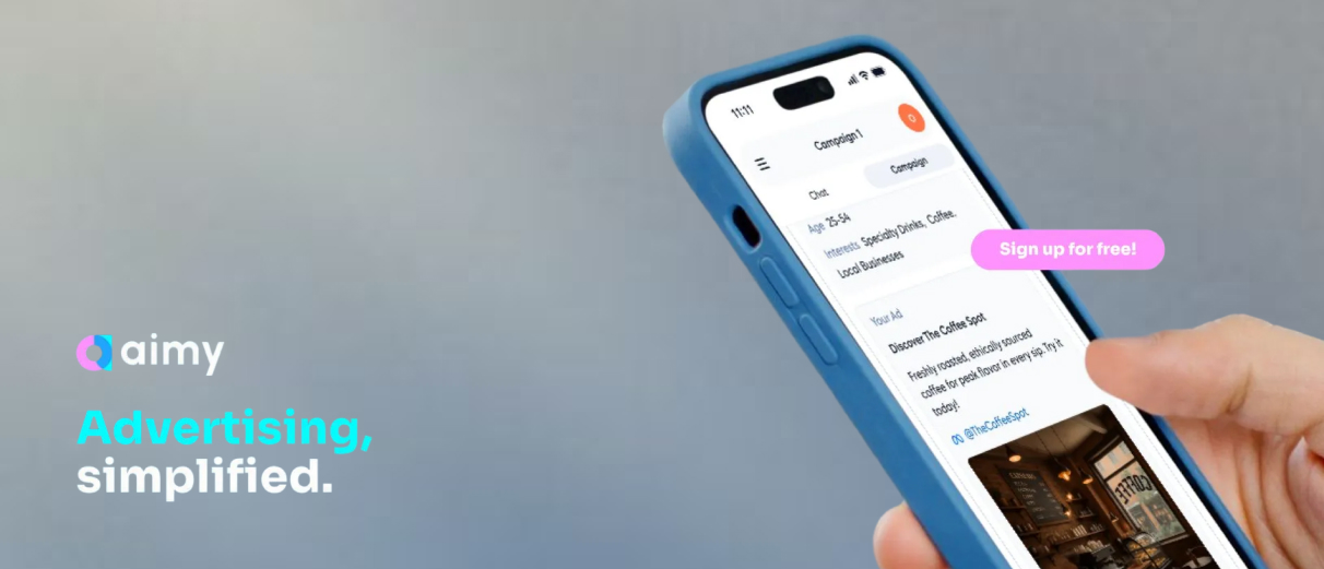 Unlike traditional tools built for large, resourced teams, Aimy is purpose-built for small and mid-sized businesses, but scalable enough to support larger organizations and enterprise use cases as well. Whether you're a local coffee shop looking to attract foot traffic or a national brand working to empower SMBs at scale, Aimy does the heavy lifting — automating tasks like audience targeting, creative recommendations, budget optimization, and performance reporting. Campaigns can be managed from desktop or mobile, making the experience seamless to businesses on the go.